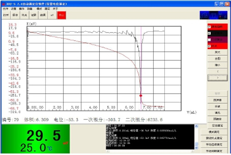 最小滴定體積:0.02ml。最大滴定體積:0.2ml,預(yù)滴定突躍量:中,80mV。