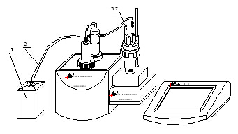 其中控制單元“滴定接口”(18)接容量滴定單元“滴定接口/RS232”(21);控制單元“測量接口(19)”接電導(dǎo)測量單元“測量接口/RS232”(32)。