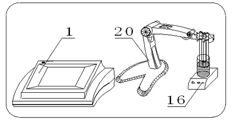 a.將主機(jī)(1)和REX-2多功能電極架(20)及JB-1A型電磁攪拌器(16)放在臺(tái)面上。
