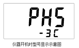 連接電源線,并打開儀器開關(guān),儀器首先顯示“PHS-3C”字樣,顯示如圖: