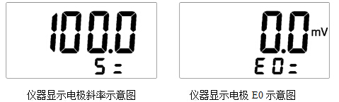 d) 然后按“確認(rèn)”鍵完成標(biāo)定!儀器存貯當(dāng)前的標(biāo)定結(jié)果,并顯示斜率和E0值,然后返回測量狀態(tài)。