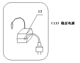 d. 穩(wěn)壓電源(13)輸出插頭插入電源插座(4)內。然后,接通穩(wěn)壓電源的電源,儀器可以正常操作。