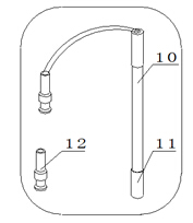 b. pH復(fù)合電極(10)和溫度傳感器(13)安裝在電極架(16)上,拉下pH復(fù)合電極(10)前段的電極套(11)。