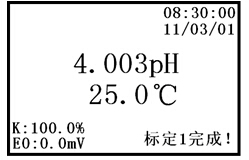 此時(shí),按“取消”鍵,則儀器返回相應(yīng)的工作狀態(tài)。若儀器顯示屏左上方顯示“E0或K值超差!”,說(shuō)明電極有可能損壞,提醒用戶需更換電極。