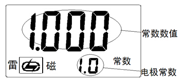 按“電極常數(shù)”鍵或“常數(shù)調(diào)節(jié)”鍵,儀器進(jìn)入電極常數(shù)設(shè)置狀態(tài),儀器顯示如圖: