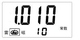 按“電極常數(shù)▽”或“電極常數(shù)△”,電極常數(shù)的顯示在10、1、0.1、0.01之間轉(zhuǎn)換,如果電導(dǎo)電極標(biāo)貼的電極常數(shù)為“1.010”,則選擇“1”并按“確認(rèn)”鍵;再按“常數(shù)數(shù)值▽”或“常數(shù)數(shù)值△”,使常數(shù)數(shù)值顯示“1.010”,按“確認(rèn)”鍵;此時(shí)完成電極常數(shù)及數(shù)值的設(shè)置(電極常數(shù)為上下二組數(shù)值的乘積)。儀器顯示如圖: