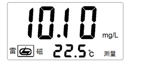 如果采用溫度傳感器,儀器接上電導(dǎo)電極、溫度電極,用蒸餾水清洗電極頭部,再用被測(cè)溶液清洗一次,將溫度電極、電導(dǎo)電極浸入被測(cè)溶液中,用玻璃棒攪拌溶液使溶液均勻,在顯示屏上讀取溶液的TDS值。例如:溶液溫度為22.5℃,TDS值為10.10mg/L,則儀器顯示如圖: