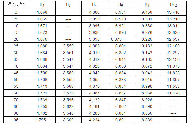 國際上有二種pH標(biāo)度,即多種基準(zhǔn)pH標(biāo)度和單種基準(zhǔn)pH標(biāo)度,中國采用多種基準(zhǔn)pHS標(biāo)度。六種基準(zhǔn)緩沖溶液0~95℃的pHs值見下表:
