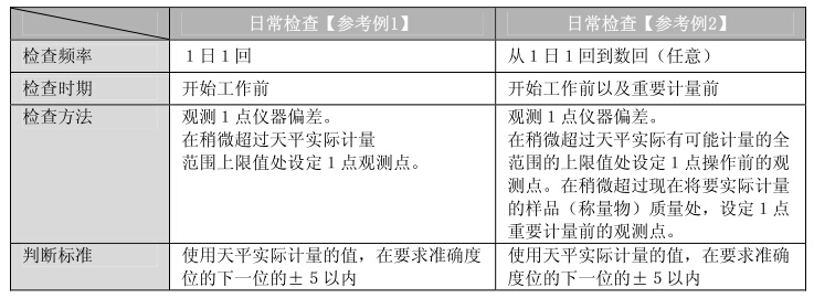 如果檢查內(nèi)容比較寬松,則在未能發(fā)現(xiàn)異常的狀況下使用天平的風險就比較高,如果過度嚴格,則有可能導致業(yè)務效率降低,因此,請根據(jù)風險、工作上所要求的性能等,充分討論檢查內(nèi)容,制定出合理的檢查內(nèi)容。
