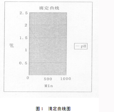 選擇第一次的測定結(jié)果為例,將pH曲線轉(zhuǎn)化到word文檔,便于直觀分析,結(jié)果如圖1。從圖上,我們可以看出隨著反應發(fā)生生成H+逐漸增加,溶液的pH值呈減小趨勢,當達到滴定終點時,Fe3+全部轉(zhuǎn)化為Fe2+,C6H6O4進入溶液后不再生成H+,靠C6H6O4做為弱酸電離產(chǎn)生的H+極少而溶液的體積不斷變大,pH值將緩慢升高,pH最小的時候就是滴定的終點。