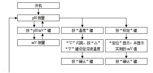 (1)打開電源開關(guān),儀器進入pH測量狀態(tài);按“pH\mV”鍵,使儀器進入mV測量即可。