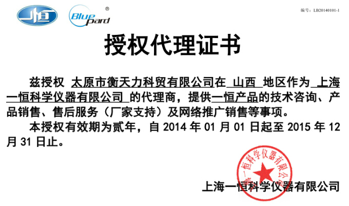 上海一恒已在多地有授權(quán)代理商,太原衡天力科貿(mào)公司是一恒在山西的代理商,授權(quán)書如下;