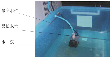 ④ 打開水箱蓋,加入純凈水。(水位高低的控制:最低應(yīng)淹沒抽水泵,最高不超過水箱上連接管口處的橡皮圈)。