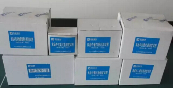 配備了很多試劑盒,可以檢測的項目包括:注水肉檢測試紙、碘鹽含碘量速測液、硼砂速測盒、食用油酸價速測卡、食醋中總酸快速測定試液包、食醋中游離礦酸速測試紙、假冒味精速測盒、大米新鮮度檢測試劑盒、肉及內(nèi)臟中鹽酸克倫特羅快速檢測卡、蘇丹紅快速檢測試劑盒、豆?jié){生熟度檢測試劑盒、水樣中孔雀石綠篩查柱、食用油中桐油、大麻油、巴豆油、礦物油鑒別試劑盒、毒鼠強(qiáng)鑒定試液包、鼠藥安妥定性試紙、砷、汞檢測試劑等。