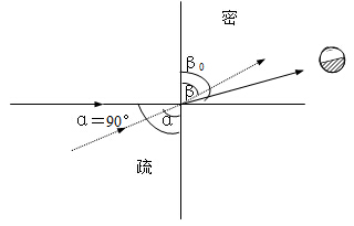 式中:a為入射角;b為折射角;nα、nβ為交界面兩側(cè)兩種介質(zhì)的折射率。在一定溫度下對于一定的兩種介質(zhì)此比值是一定的。光束從光密介(如玻璃)進入光疏介質(zhì)(如空氣)時,入射角小于折射角,入射角增大時折射角也增大,但折射角不能無限增大,只能增加到b=90°。這時入射角成為臨界角。因此,只有入射角小于臨界角的入射光才能進入光疏介質(zhì)中。反之,若一束光線由光疏介質(zhì)進入光密介質(zhì)時,入射角大于折射角。當(dāng)入射角a=90°時,折射角為bo,故任何方向的入射光都可進入光密介質(zhì)中,其折射角b≤bo。折射計是根據(jù)這個臨界折射現(xiàn)象設(shè)計的。