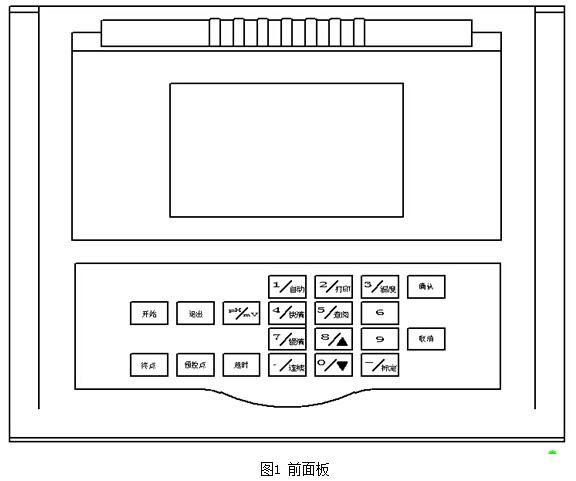 儀器的前面板示意圖見圖1。顯示器為240×128點陣的圖形點陣液晶。儀器共有20個按鍵,其中9個為復(fù)用鍵。各按鍵的基本功能如下: