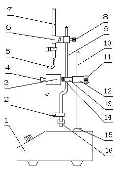 (4) 將滴管夾(6)安裝在序號9的滴管架(二)上,調(diào)節(jié)至合適位置,旋緊滴管架固定螺絲(8)固定之;
