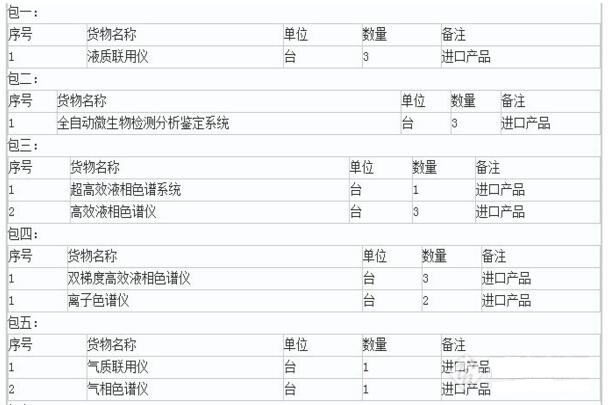 山西省國際招標(biāo)公司受山西省食品藥品監(jiān)督管理局委托,近期擬2119萬采購色譜、質(zhì)譜等食藥設(shè)備。此次公開招標(biāo)共分為了七包,資金來源為財(cái)政資金,涉及到的儀器設(shè)備包括了液質(zhì)聯(lián)用儀、超高效液相色譜系統(tǒng)、離子色譜儀、氣質(zhì)聯(lián)用儀、氣相色譜儀和雙梯度高效液相色譜儀等,其中大部分儀器設(shè)定為進(jìn)口儀器品牌。