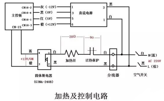 (2)加熱電路由:過(guò)熱保護(hù)器,加熱絲和固體繼電器(實(shí)際上是個(gè)開(kāi)關(guān))組成。
