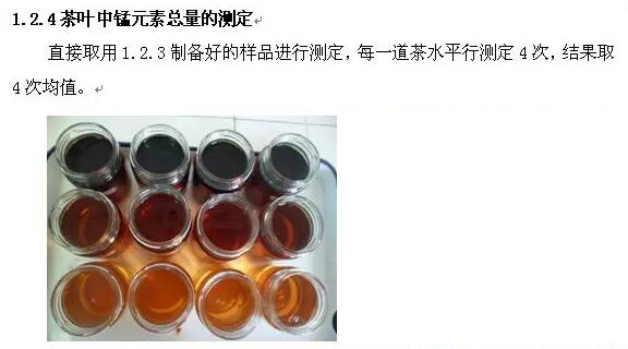 本實驗著重對茶葉中錳的自然溶出量進行測試,并對現(xiàn)泡茶與隔夜茶進行比較,給廣大飲茶愛好者一個參考依據(jù)。