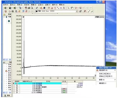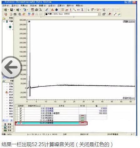 在色譜圖上52min處點(diǎn)右鍵,點(diǎn)增加計(jì)算噪音OFF。(藍(lán)色標(biāo)志)