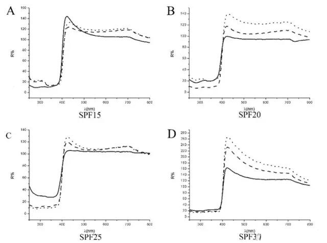 反射光譜的測定反映了防曬化妝品對紫外線的吸收效果,拓展到可見光區(qū)域的反射光譜研究為防曬用品使用后的主觀感受評價提供了依據(jù)。