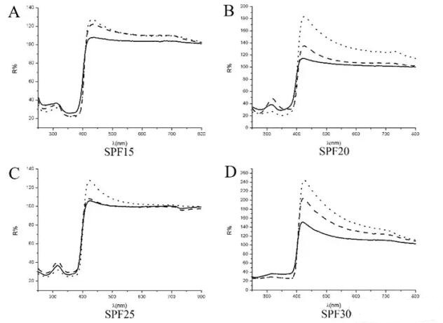 3.2 防曬霜化妝品的紫外—可見光反射率