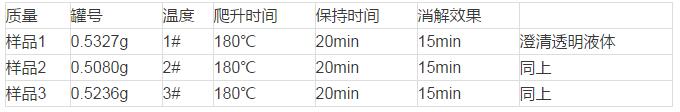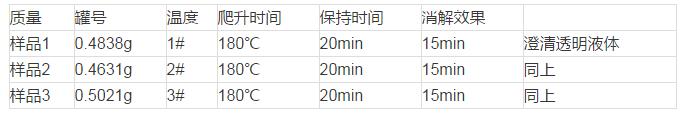 注:消解液為10mL優(yōu)級純硝酸,功率根據(jù)消解罐的數(shù)量自動調(diào)整確定