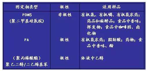 固相微萃取的使用關(guān)鍵在于“纖維頭的選擇”,這種情況類似于色譜柱的選擇,主要根據(jù)分析對(duì)象的分子量和極性。