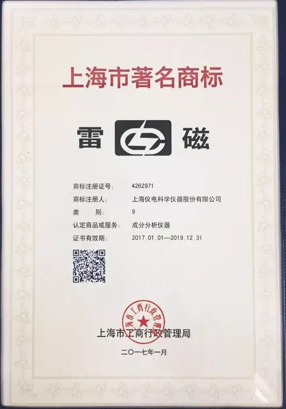 “雷磁”商標是上海儀電科學(xué)儀器股份有限公司的自主品牌,創(chuàng)建于1953年,目前主要為客戶提供各類實驗室、在線和現(xiàn)場檢測等系列儀器以及環(huán)保水質(zhì)監(jiān)測系統(tǒng)集成、食品安全檢測系統(tǒng)集成等各個領(lǐng)域的系統(tǒng)集成服務(wù)和運營系統(tǒng)集成解決方案,是目前國內(nèi)最大的電化學(xué)分析儀器研制基地。