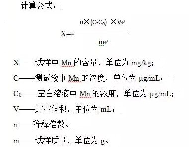 將樣品放在馬弗爐550℃±15℃溫度下灰化,分解有機(jī)質(zhì)后,加鹽酸使灰分中的無機(jī)離子全部溶解,然后導(dǎo)入原子吸收分光光度計的空氣-乙炔火焰中原子化,測定錳元素的吸光度,并與錳元素校正溶液的吸光度比較定量。