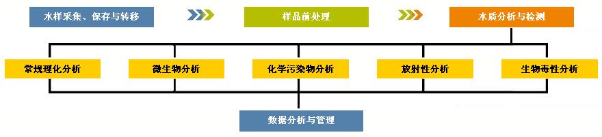 水質(zhì)檢測實(shí)驗(yàn)室設(shè)計(jì)和規(guī)劃需要充分考慮從樣品收集、樣品保存、樣品轉(zhuǎn)移、樣品制備、儀器分析、數(shù)據(jù)管理等一系列分析檢驗(yàn)流程,合理安排檢驗(yàn)儀器設(shè)備局,從常規(guī)水質(zhì)理化指標(biāo),分別按照檢測要求檢測微生物、有機(jī)/無機(jī)化學(xué)污染物、放射性以及生物毒性等進(jìn)行檢測。