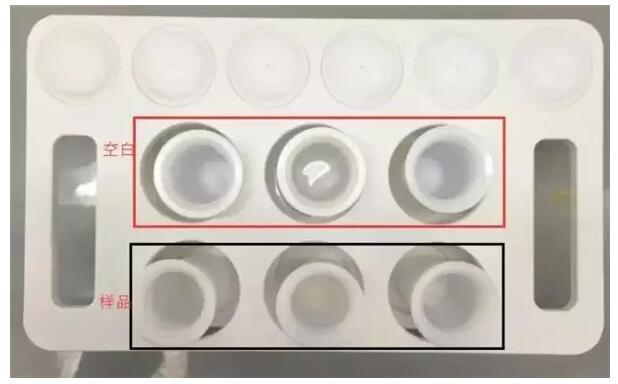 然后把樣品放入微波消解儀中消解,大約30分鐘后,消解完成的樣品變成了淡藍色。