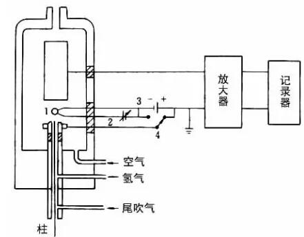 1——電離源 2——加熱系統(tǒng) 3——極化電壓 4——噴嘴極性轉(zhuǎn)換開關(guān)