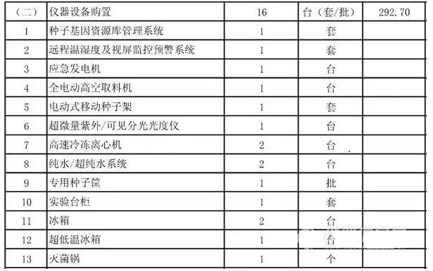 項目建設地點位于海南省儋州市寶島新村,主要建設內(nèi)容為新建中期種子備份庫1224平方米,道路與場地硬化950平方米,以及照明、給排水、消防等配套室內(nèi)外工程;購置儀器設備16臺(套/批)�?偼顿Y966萬元,全部為中央預算內(nèi)投資。項目建設期為2年。