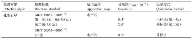 表2 水產(chǎn)品中孔雀石綠殘留標(biāo)準(zhǔn)測(cè)定方法