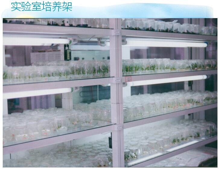 培養(yǎng)架一般設5層,最低一層離地高約lOcm,其他每層間隔30cm左右,培養(yǎng)架高1.7m左右。其長度根據(jù)日光燈長度而設計, 如采用40W日光燈,則長I.3m,30W的長lm,寬度一般為60cm。