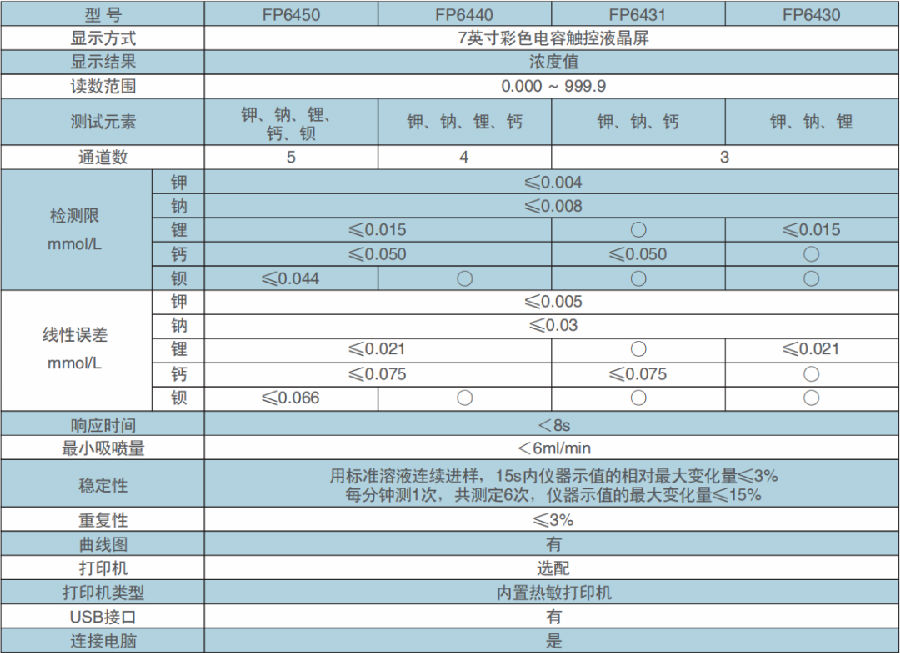 K:檢測(cè)限≤ 0.004mmol/L;Na:檢測(cè)限≤ 0.008mmol/L